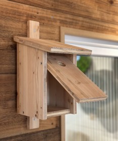 Die unbehandelte Oberfläche ist frei von Schadstoffen und somit sicher für Vögel. Mit der Einflugöffnung von 32 mm Durchmesser eignet sich der Kasten für eine Vielzahl an heimischen Gartenvögeln. Die Leiste mit jeweils einem Schraubloch oben und unten ermöglicht ein bequemes Aufhängen. Eine klappbare Reinigungsöffnung auf der Vorderseite erleichtert die Pflege nach der Brutzeit – für viele Jahre Freude an Ihrem neuen Vogelhaus.